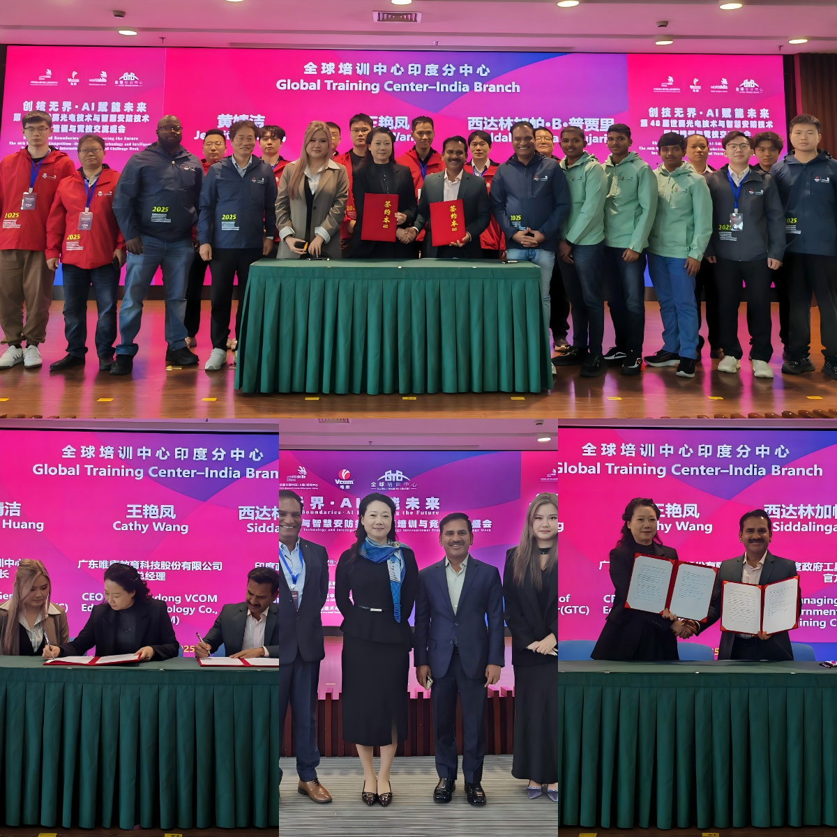 Within this shared standards framework, international cooperation mechanisms were advanced in parallel. During the event, the Global Training Center (GTC), Guangdong VCOM Education Technology Co., Ltd., and India’s Government Tool Room & Training Centre (GTTC) signed a Letter of Intent to initiate the establishment of the GTC - India Branch. The cooperation focuses on key fields such as optoelectronic technology and intelligent security technology, covering applied training programs, joint curriculum development, technical standards alignment, and WorldSkills competition preparation. This collaboration marks a shift from short-term exchanges toward systematic co-construction of global skills resources, with continued expansion along Belt and Road partner regions.